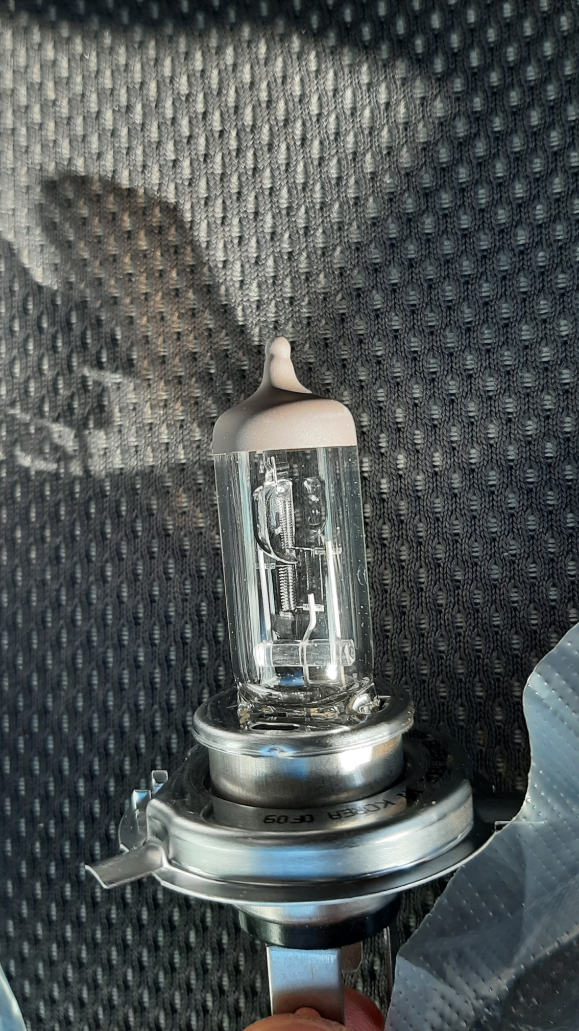 새 할로겐램프는 H4타입으로 다양한 차종에 호환된다. 새 전구를 소켓에 연결할 때의 주의사항은 맨손 작업을 금물이며 가급적 깨끗한 장갑을 착용한 상태에서 전구 교환을 하고 전구의 유리면을 만지지 않아야 한다는 사실이다. 끝으로 전조등 교환은 분리의 역순이다.